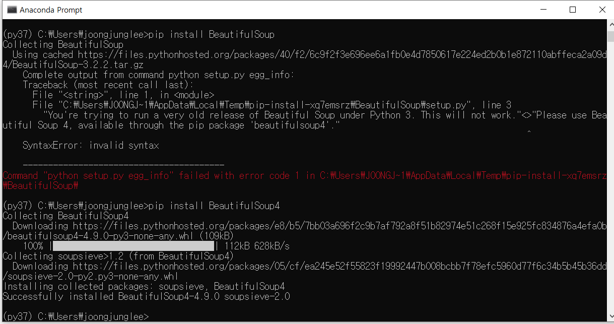 python3.7 pip install beautifulsoup Error 본문